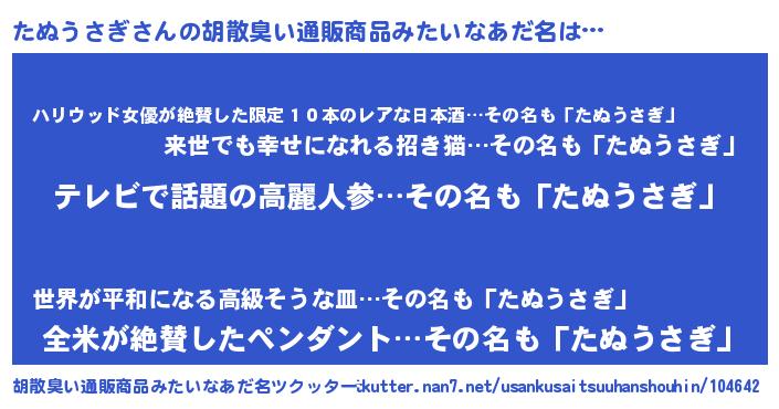 | 意味不明あだ名 | 『自称たぬうさぎ』『永久保存たぬうさぎ』 |