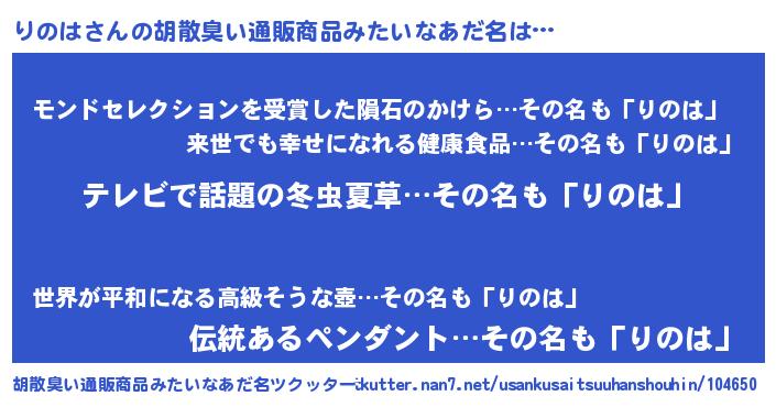 | 意味不明あだ名 | 『自称りのは』『眠気覚ましガムりのは味』 |