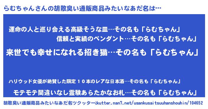| 恥ずかしいあだ名 | 『らむちん』『らむっちょ』 |
