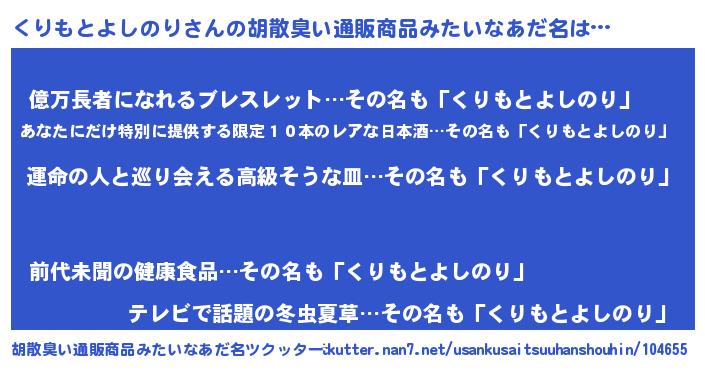 | 意味不明あだ名 | 『くりもとよしのりフォーエバー』 |