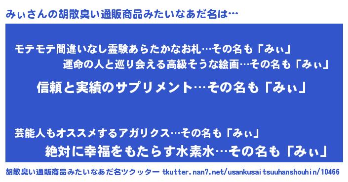 | ヘコむあだ名 | 『みぃを』『みぃっふぃ~』 |