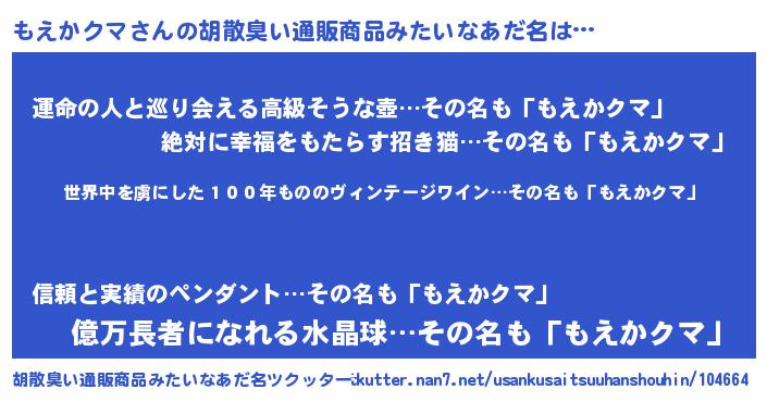 | 意味不明あだ名 | 『住所不定無職もえかクマ(6歳)』 |