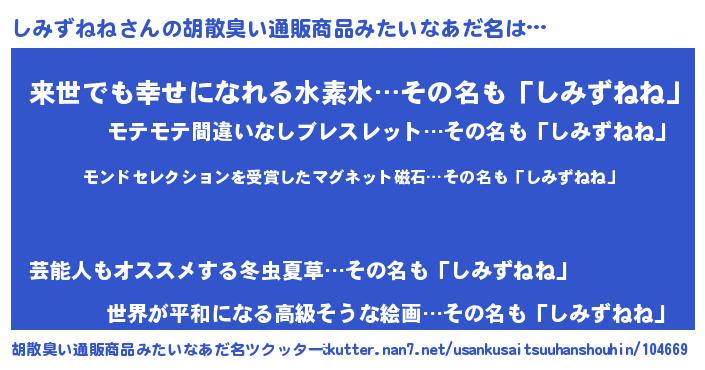 | 意味不明あだ名 | 『眠気覚ましガムしみずねね味』 |