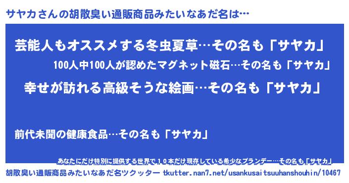 | 意味不明あだ名 | 『サヤカフォーエバー』『自称サヤカ』 |