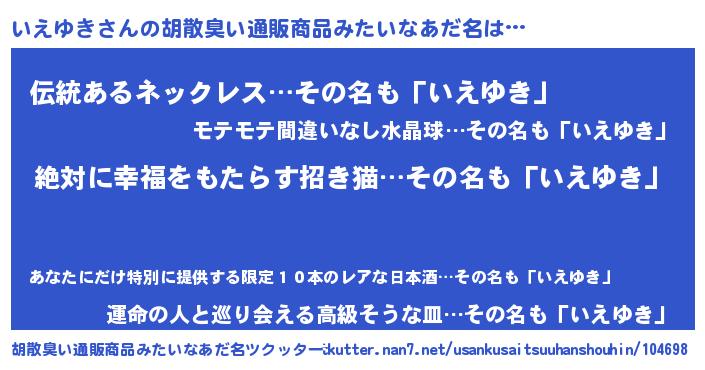 | 伝説のあだ名 | 『聞きしに勝る吟遊詩人いえゆき』 |