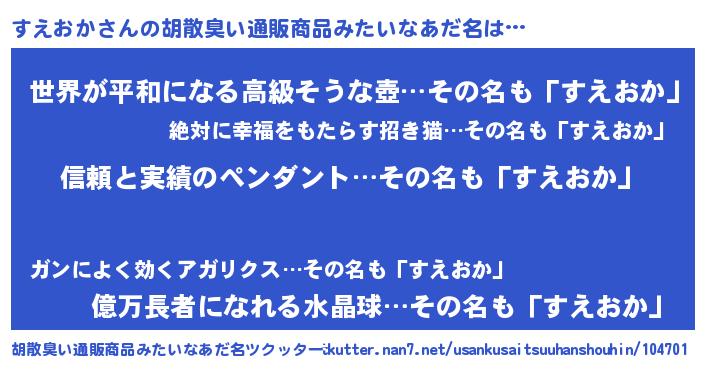 | 女子向けラノベタイトル風あだ名 | 『すえおかは平凡を望む』 |