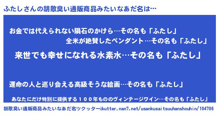 | ヒーロー風カッコイイあだ名 | 『ネオフタシ』『慈愛の使者ふたし』 |