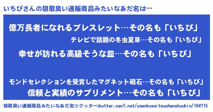 | 欧米人風あだ名 | 『アンジェラ・いちぴ』『マイケルいちぴ』 |