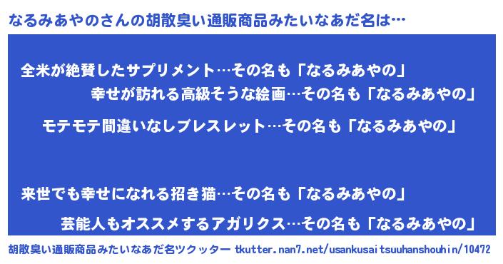 | 恥ずかしいあだ名 | 『プリティーなるみあやの』『なるっちょ』 |