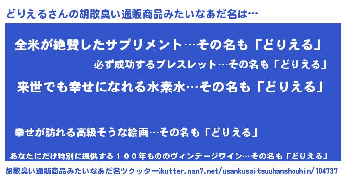 | 意味不明あだ名 | 『永久保存どりえる』『ペロリンどりえる』 |