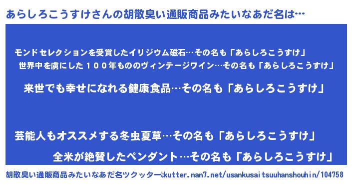 | ヘコむあだ名 | 『あらしろこうすけ(笑)』『あらっ子』 |