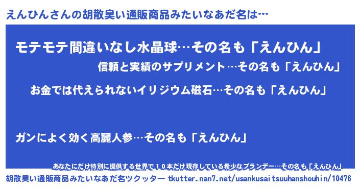 | ヘコむあだ名 | 『えんふぇ~』『えん太郎』『つくし』 |