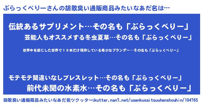 | 意味不明あだ名 | 『住所不定無職ぶらっくべりー(86歳)』 |