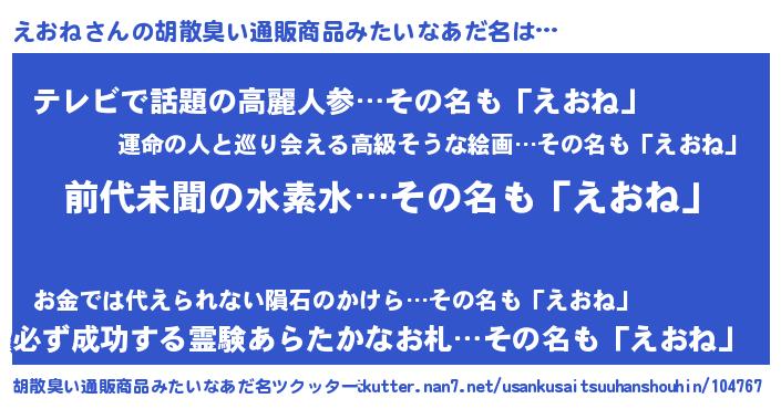 | 意味不明あだ名 | 『永久保存えおね』『自称えおね』 |