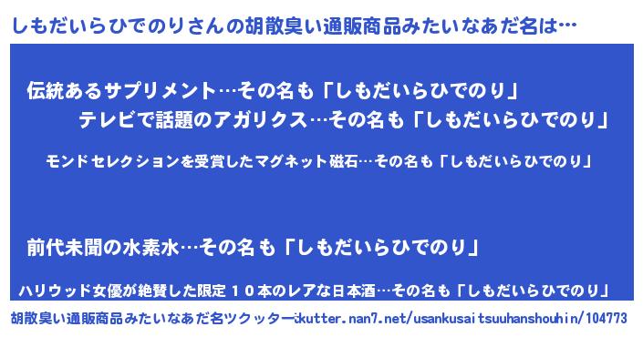 | 意味不明あだ名 | 『眠気覚ましガムしもだいらひでのり味』 |