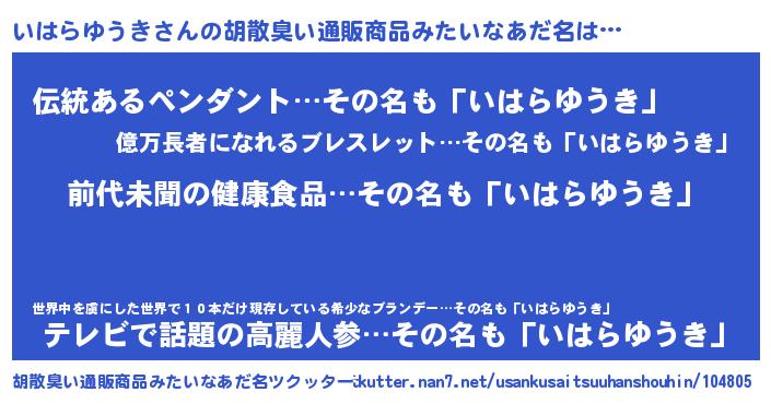 | 伝説のあだ名 | 『古文書に記された暗殺者いはらゆうき』 |