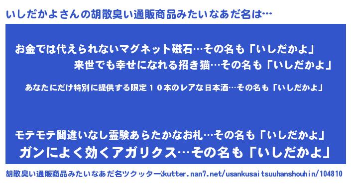 | ヘコむあだ名 | 『いしだかよ(笑)』『いしにー』 |