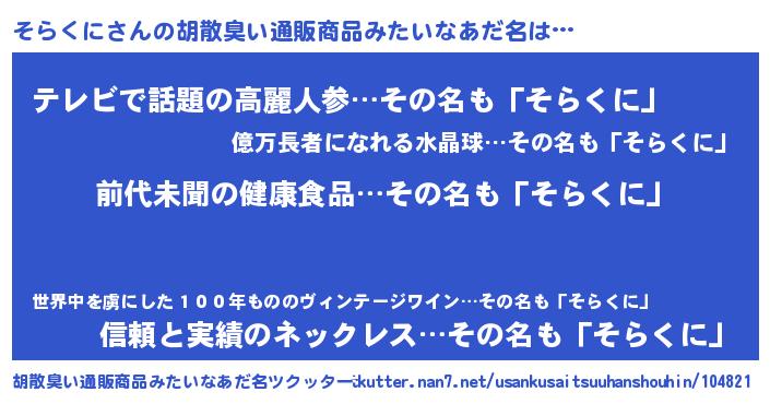 | ヘコむあだ名 | 『そらくに(笑)』『そらお』 |