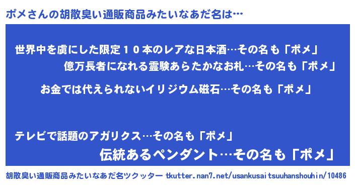 | 意味不明あだ名 | 『なめこ科ポメ属』『とにかく怪しいポメ』 |
