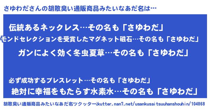 さゆわださんの胡散臭い通販商品みたいなあだ名をツクッター!