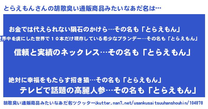 | 男性向けラノベタイトル風あだ名 | 『ダンジョンにとらえもんを求めるのは間違っているだろうか』 |