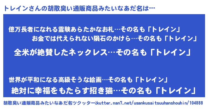 | 意味不明あだ名 | 『とにかく怪しいトレイン』 |