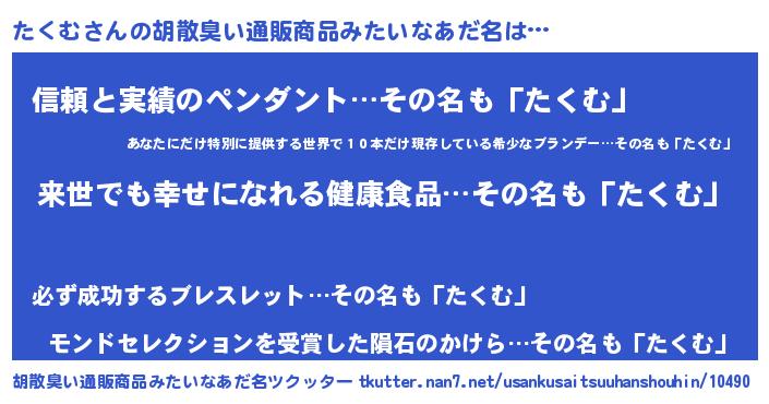 | ヘコむあだ名 | 『たくむ(苦笑)』『たくっぺ』 |