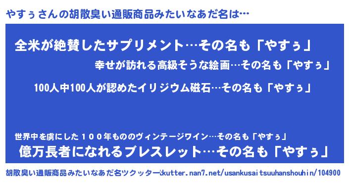 | 欧米人風あだ名 | 『ダニエルやすぅ』『ウサインやすぅ』 |