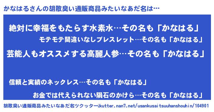 | ヘコむあだ名 | 『かなはる(小並感)』『かなもー』 |