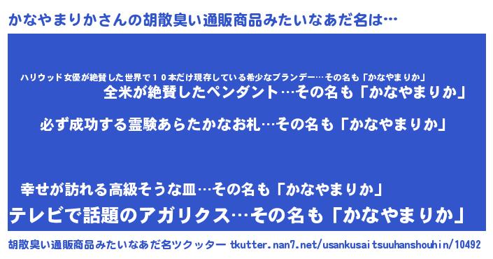 | 伝説のあだ名 | 『伝説のスナイパーかなやまりか』 |