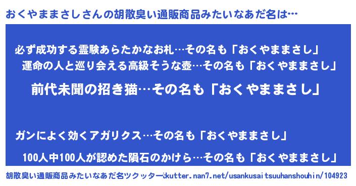 | 肩書あだ名 | 『おくやままさし先生』 |