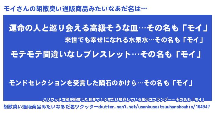| 男性向けラノベタイトル風あだ名 | 『モイの憂鬱』 |