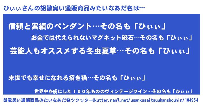 | 意味不明あだ名 | 『ニラ科ひぃぃ属』『自称ひぃぃ』 |