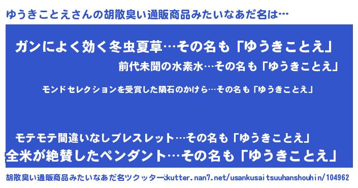 | ヘコむあだ名 | 『ゆうっちょ』『ゆうきことえ(小並感)』 |
