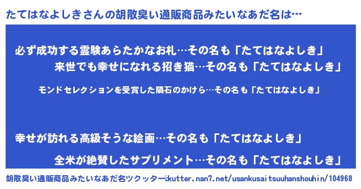 | 男性向けラノベタイトル風あだ名 | 『ノーゲーム・ノータテハナヨシキ』 |