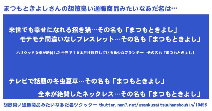 | ヘコむあだ名 | 『まつもときよし(遠い目)』『まつお』 |