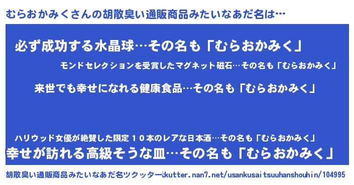 | ヘコむあだ名 | 『むらおかみく(笑)』『むらふぇ~』 |