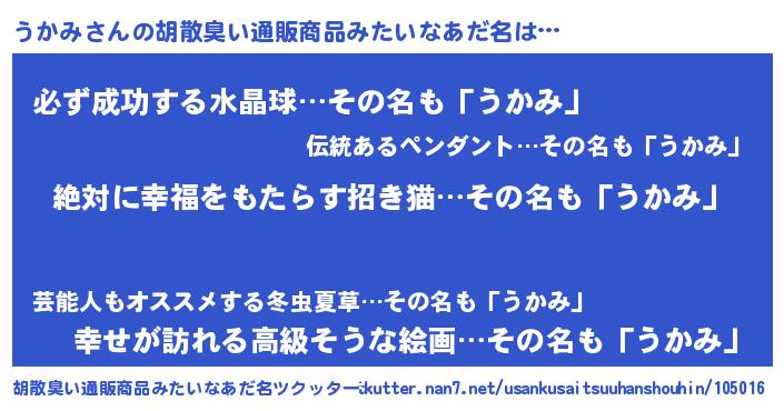 | 恥ずかしいあだ名 | 『うかちん』『プリティーうかみ』 |