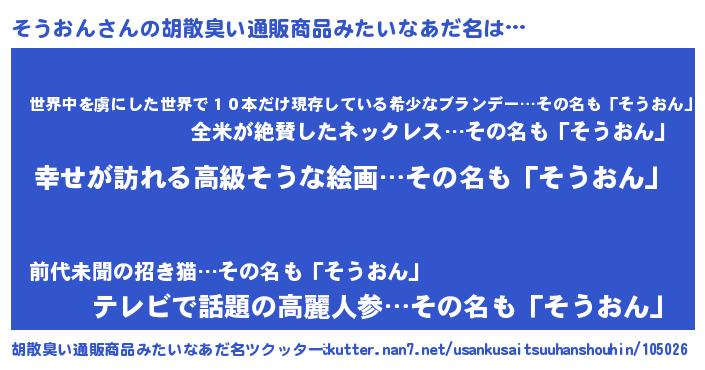| 肩書あだ名 | 『そうおん中佐』『そうおん国家主席』 |