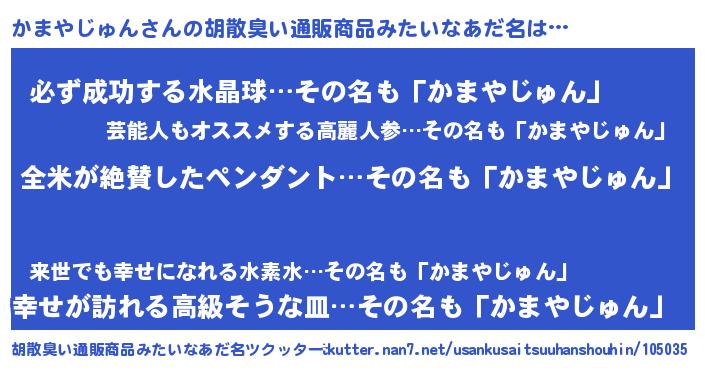| 意味不明あだ名 | 『とにかく怪しいかまやじゅん』 |
