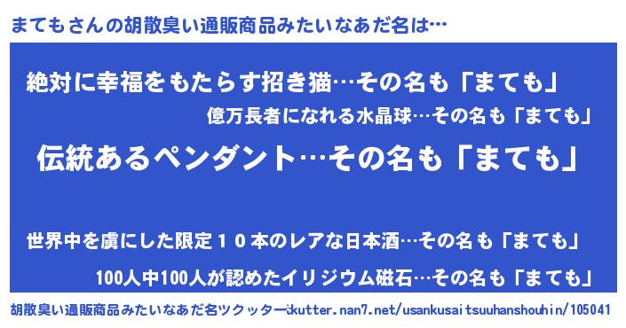 | 意味不明あだ名 | 『とにかく怪しいまても』 |