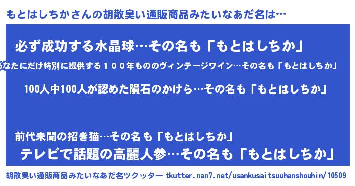 | ヘコむあだ名 | 『もとっふぃ~』『もとはしちか(笑)』 |