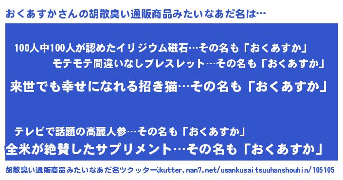 | 意味不明あだ名 | 『永久保存おくあすか』 |