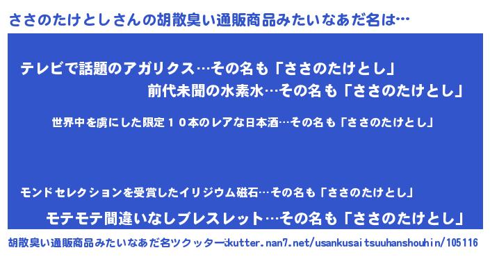 | 欧米人風あだ名 | 『ダレノガレささのたけとし』 |