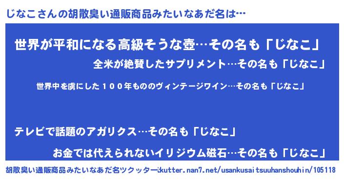 | 意味不明あだ名 | 『住所不定無職じなこ(7歳)』 |