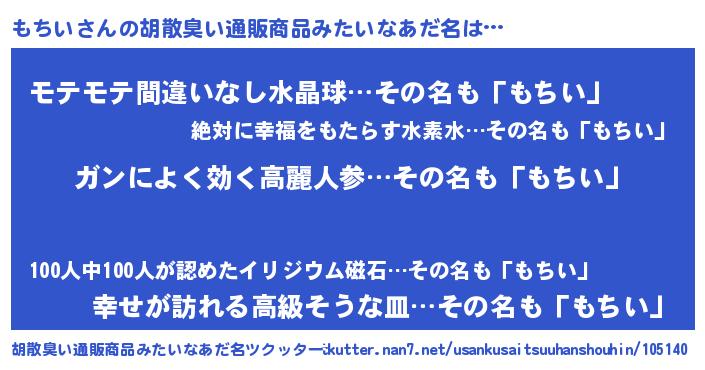 | ヘコむあだ名 | 『もちふぇ~』『牛乳』『もちっちょ』 |