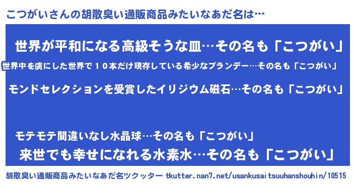 | ヒーロー風カッコイイあだ名 | 『天空の使者こつがい』『ネオコツガイ』 |