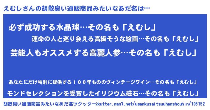 | 欧米人風あだ名 | 『アンジェラ・えむし』『マイケルえむし』 |