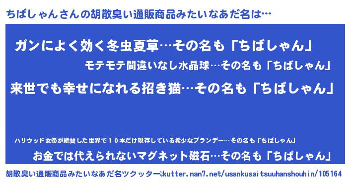 | ヘコむあだ名 | 『ちばしゃん(笑)』『ちばふぇ~』 |