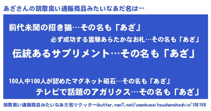 ポケモン風あだ名 | 『ヒアザ』『ゼニアザ』『アザセウス』 |